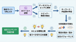 上位表示されている競合サイトの分析はSEOの基本ですが、これもAIで効率化できます。