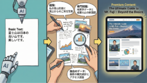 AIの利用が一般化する中で、競合と差をつけるためには、AIには生成できない「付加価値」をいかにコンテンツに盛り込むかが鍵となります。