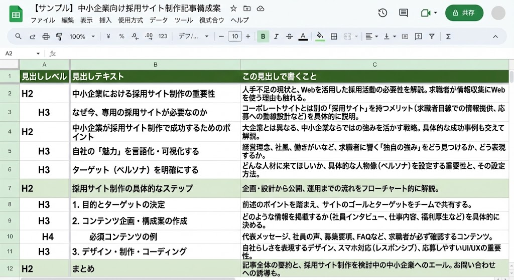 SEO対策で中小企業が作るべき記事の書き方:構成案